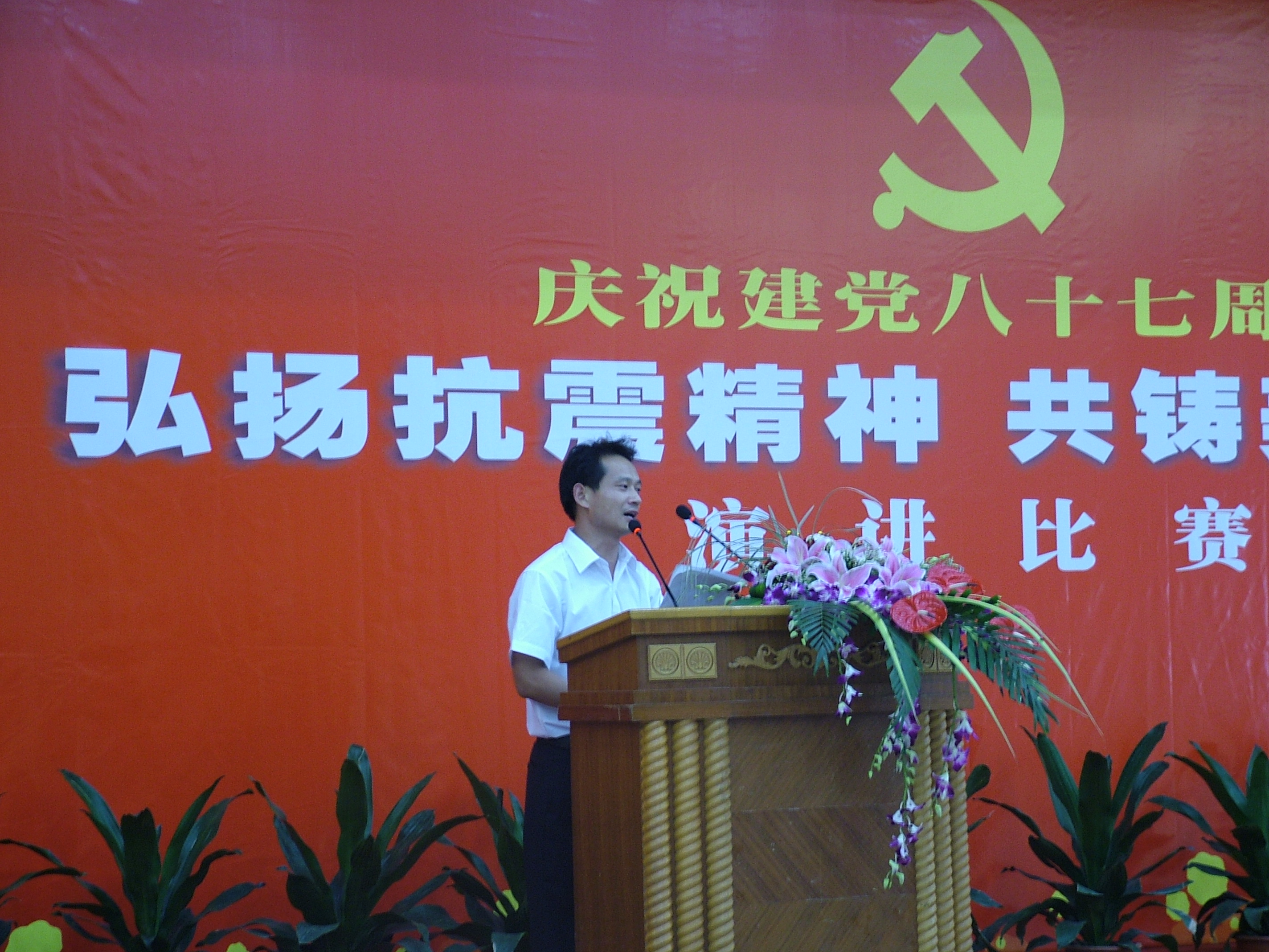 6月27日,为庆祝中国共产党建党八十七周年,一场由中共柳市镇党委、柳市镇人民政府主办的以“弘扬抗震精神,共建美n家园”为主题的演讲比赛,在柳市镇人民政府激烈展开,经过一番角逐,临时顶替同事上台的长江集团员工王超荣获三等奖。