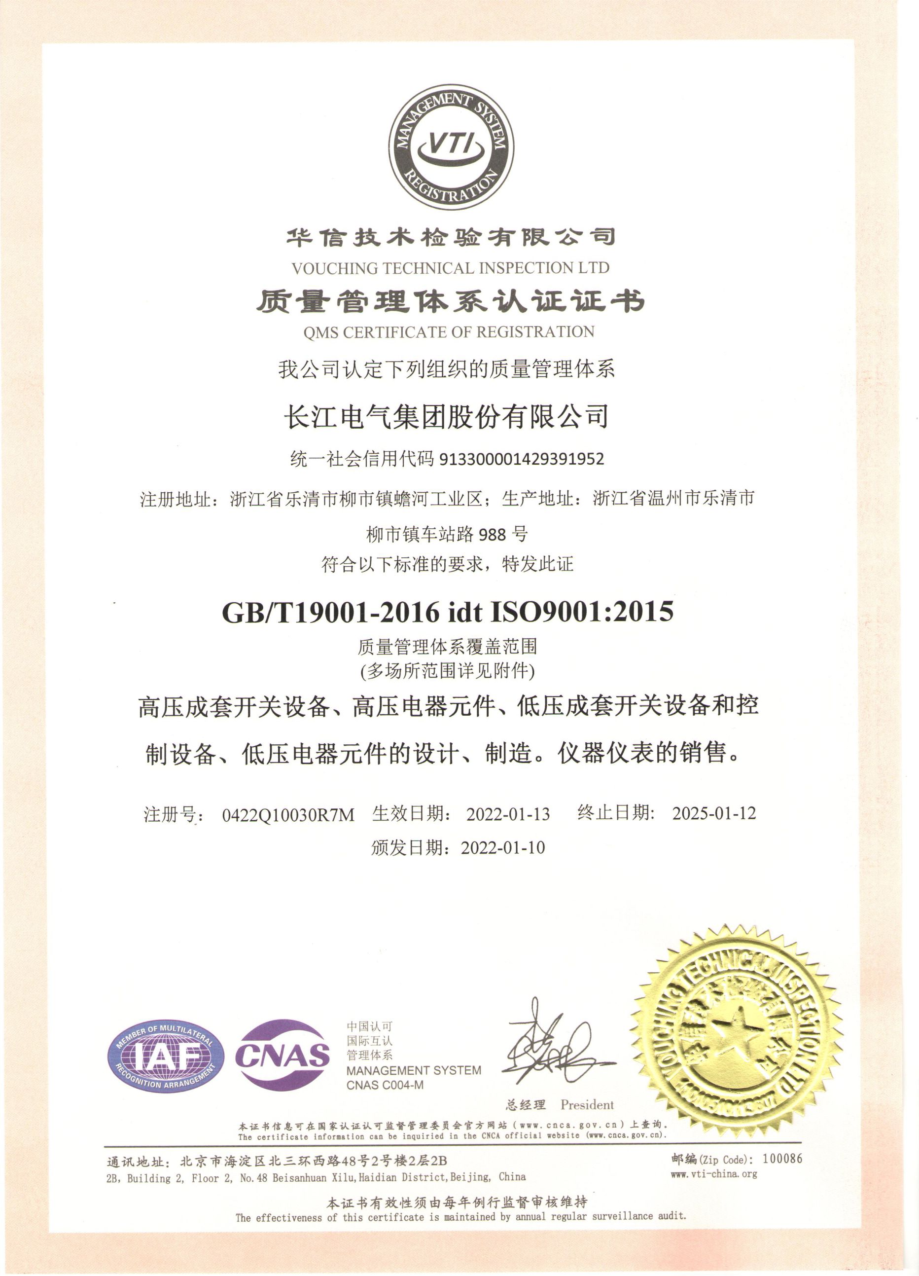 质量管理体系认证证书