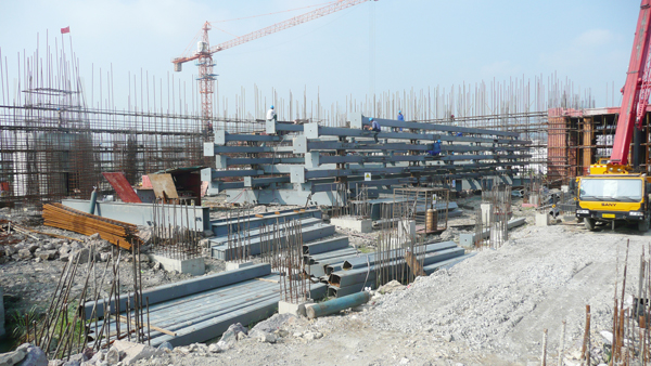 目前,乐清项目土建工作已全面铺开,综合楼工程完成全部主体砌筑、内外墙抹灰和门窗安装,正在进行内部装修作业;垃圾坑及渗滤液池底板全部浇筑完毕;垃圾斗间、煤仓间、锅炉及烟囱0米以下混凝土基础浇筑完成;完成干煤棚、输煤栈桥、及破碎楼基础,正进行上部施工;汽机集控楼二层主体正在施工。