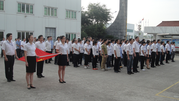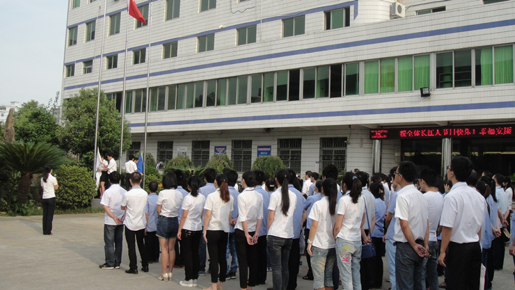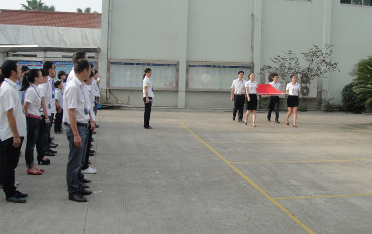 7时30分,长江电气“庆‘十一’、升国旗、唱国歌”仪式正式开始。由集团2012年度优秀员工代表薛乐平、张碎红、景山墩、胡浩组成的护旗方队正步走向升旗台,在全体干部员工的庄严注目中,一面鲜艳的五星红旗伴随着雄壮的国歌声徐徐升起。鲜艳的国旗迎风招展,国旗下,参加升旗的公司领导与干部职工排成整齐的队伍全体肃立,怀着崇高的敬意和无比自豪的心情绕肷高唱,嘹亮的国歌声响彻园区。冉冉升起的五星红旗,点燃了每个人心中的爱国之情;激昂的国歌,激发出每个人的责任感和奋进豪情。